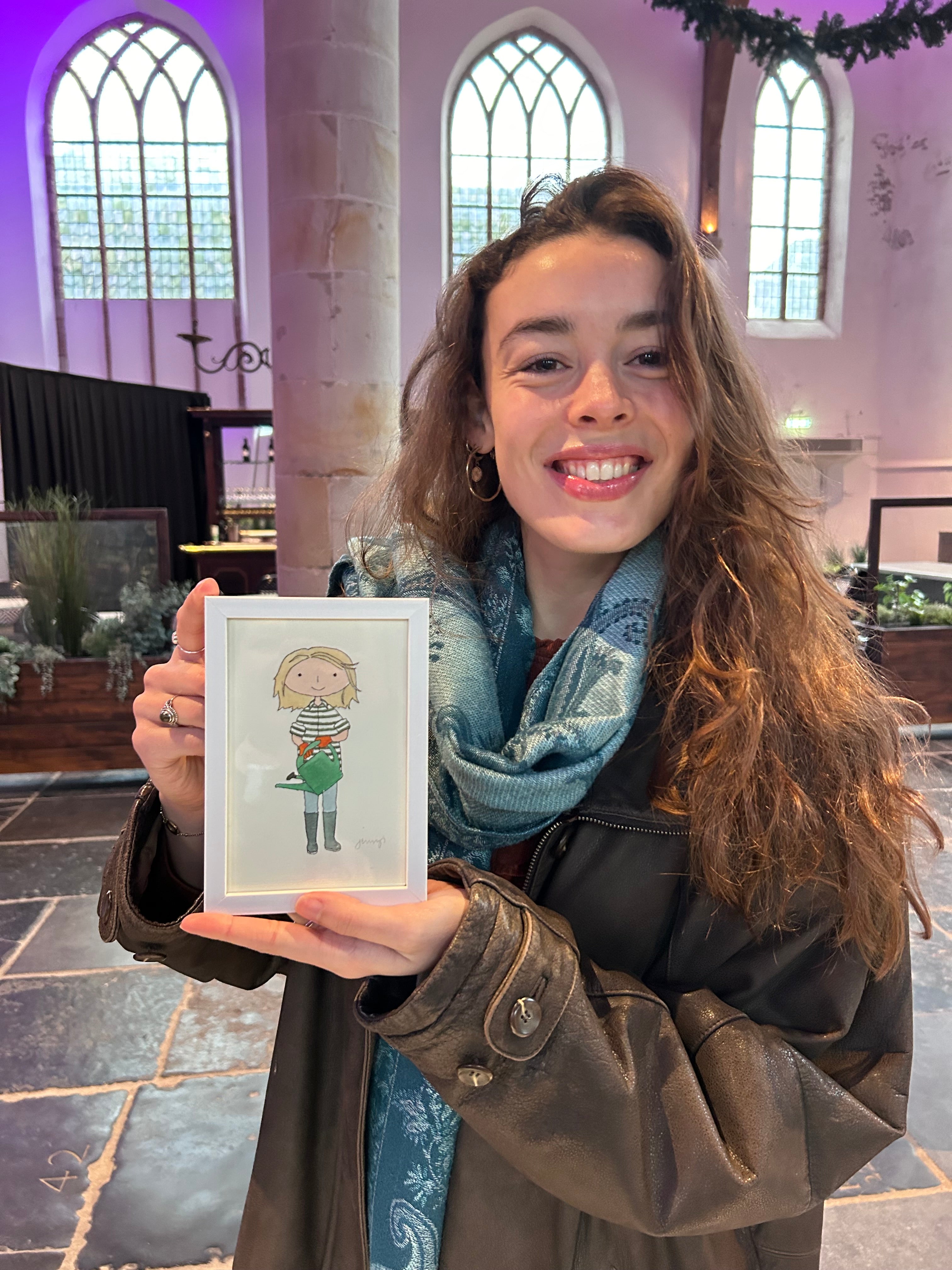 You will receive a postcard-sized original hand-painted watercolour portrait at the address you leave at Checkout.
